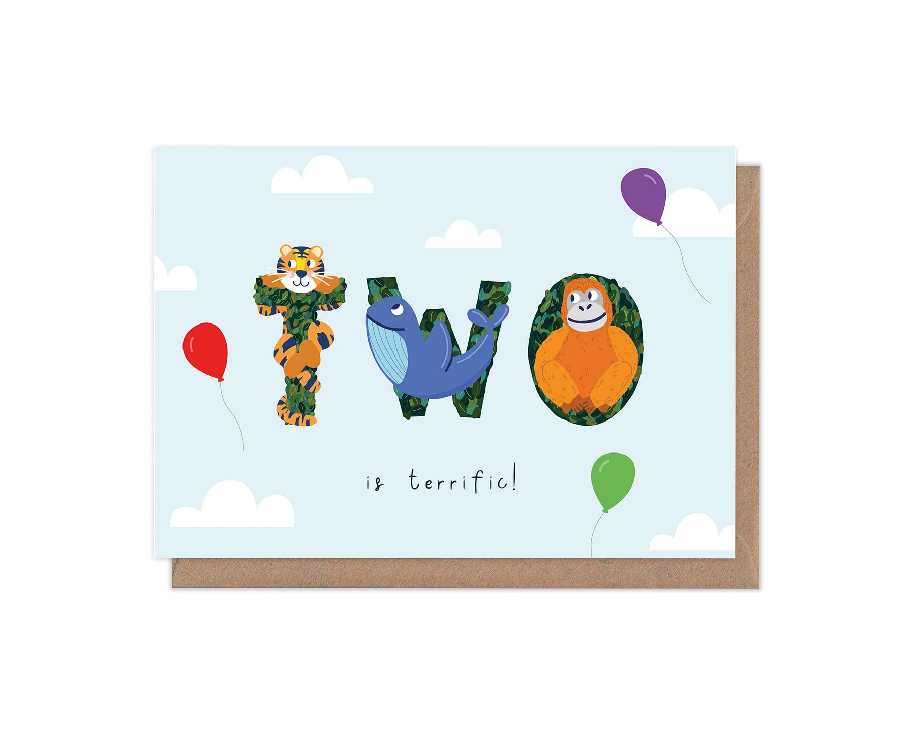 Two Is Terrific Animal Alphabet 2nd Birthday Card