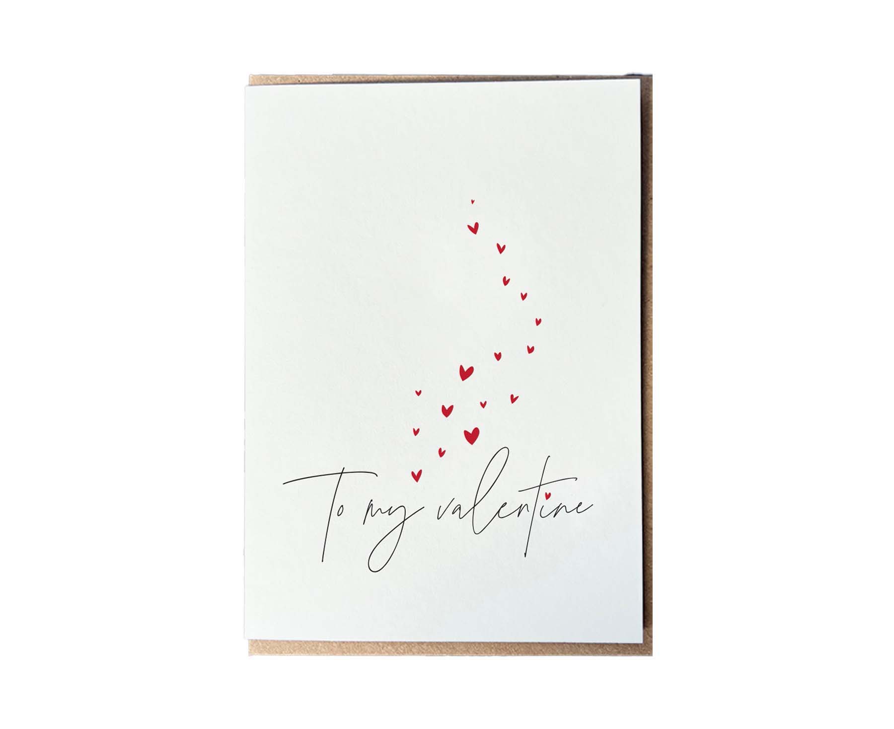 Express your love for your Valentine with a flurry of gorgeous little red hearts on this beautiful Valentine's card which bears the message 'To My Valentine.' All Penguin Ink cards are Letterpress printed in England using a traditional Heidelberg press, giving them a tactile embossed finish on a thick textured card stock.