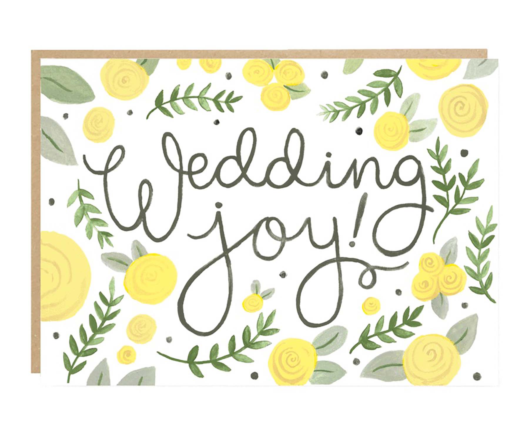 With a delicate floral and leaf motif paired with joyous hand lettering, this wedding joy wedding card from Jade Fisher would be a joy to give and receive on any couple's big day!