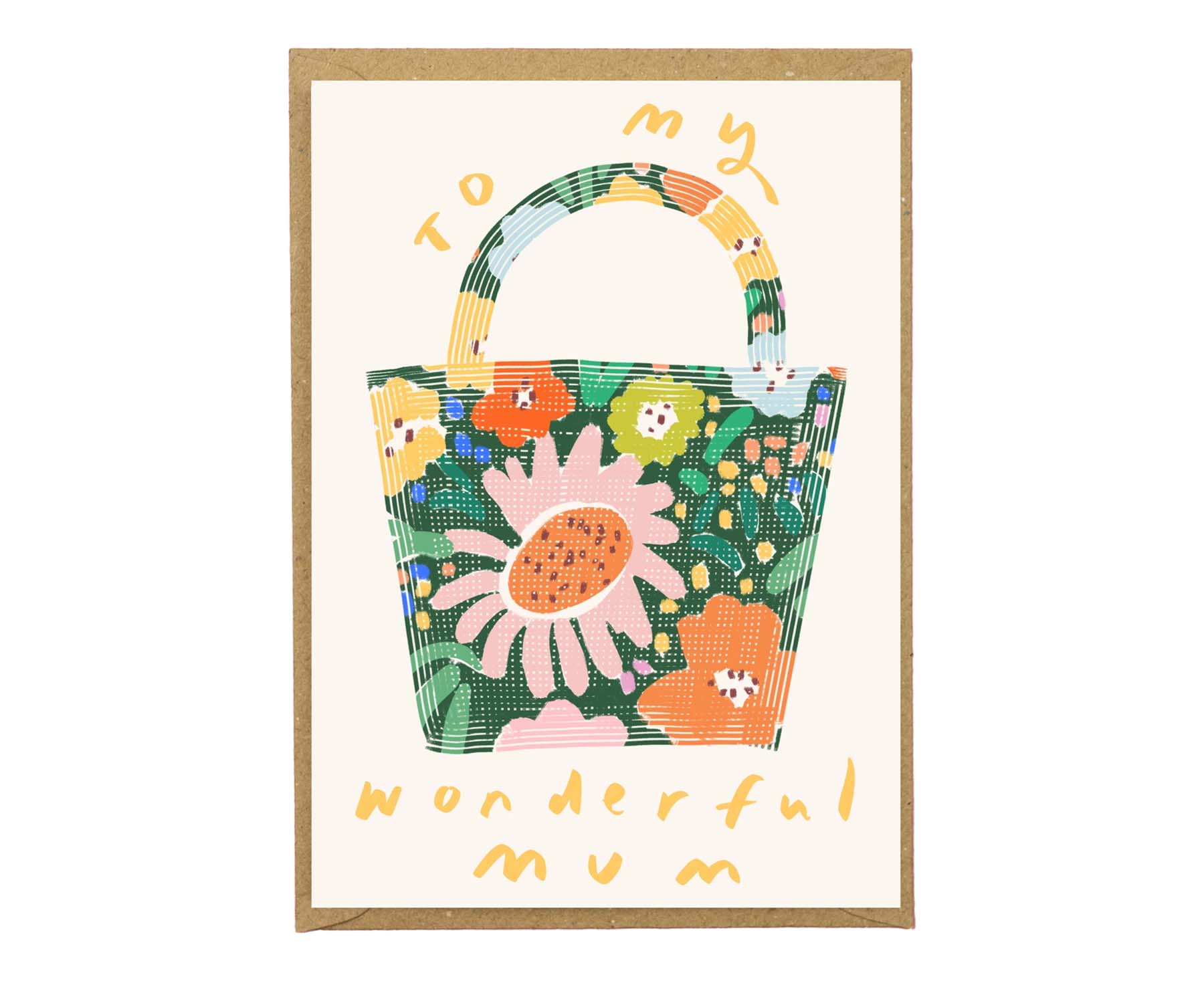 Wonderful Mum Floral Handbag Illustrated Mother's Day Card