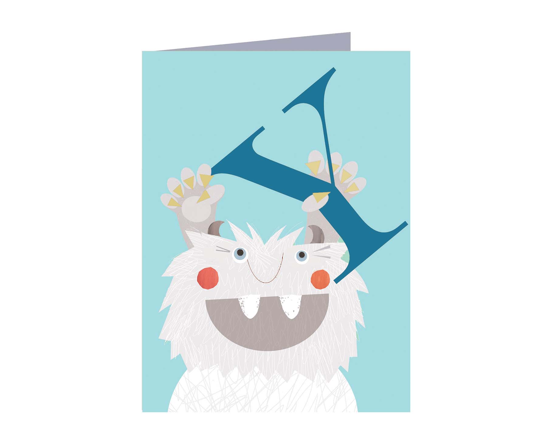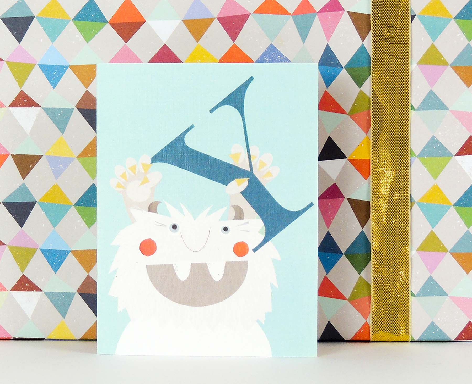 This beautifully drawn Y for Yeti mini letter card is part of Kali Stileman's fabulous Tiddly Letter range, printed on tactile and lovely linen textured card. Their dinky size (and price) makes them ideal to combine into names or words to go on a little one's wall or shelf!
