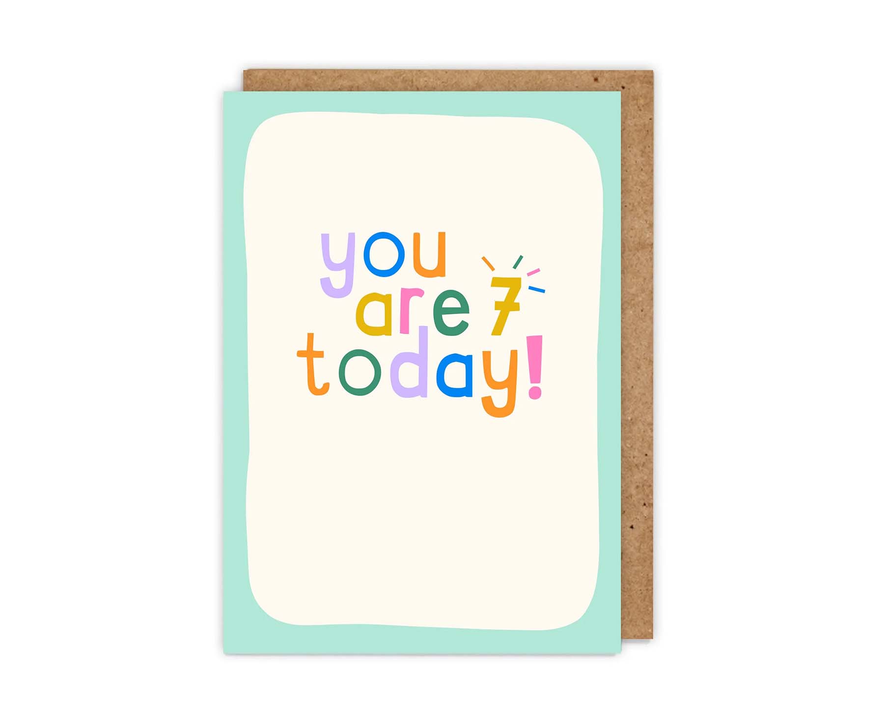 Featuring Zoe Spry's trademark colourful hand lettering, this 7th Birthday Card proudly proclaims the big day!