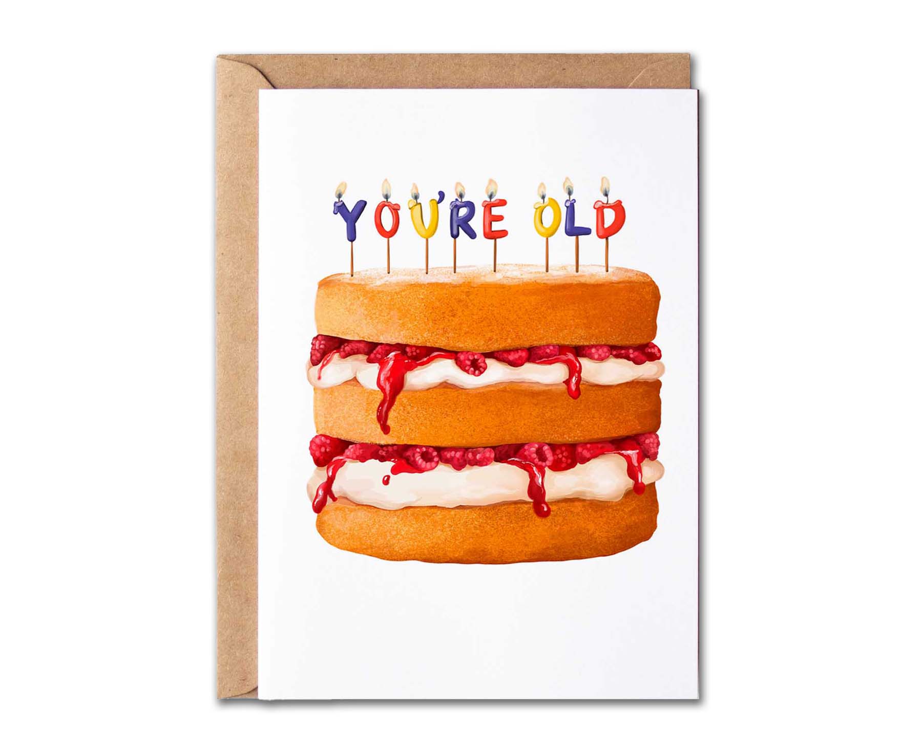 With all the subtley and tact of a cake in the face, this sumptuously illustrated birthday card tells the truth! All of Katie Tinkler's cards start life as original paintings which she then combines with vibrant backgrounds and beautiful hand lettering to create gorgeous pun filled greetings.